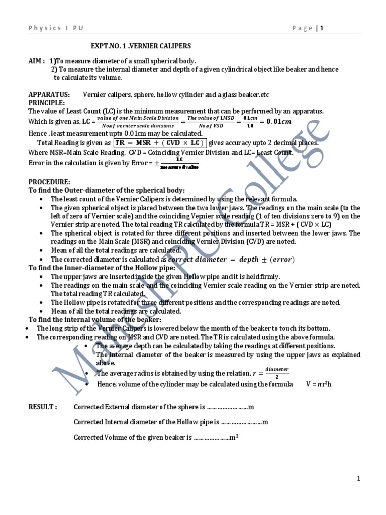 To measure diameter of a small spherical cylindrical body using verniers callipers a vernier scale or a vernier calliper is a measuring device that is used to precisely measure linear dimensions. The spherical shape allow only a single contact point per anvil on the bore wall.